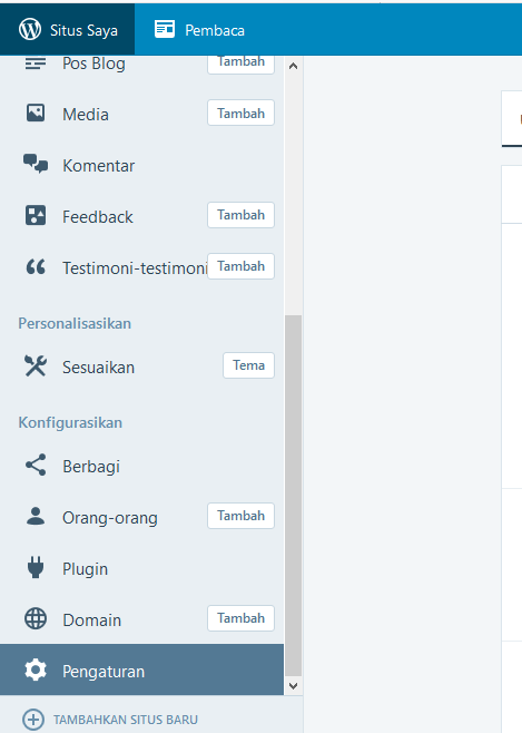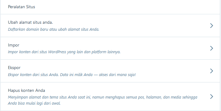 setelah menekan seting tadi dan scrool ke bawah lalu lihat pada bagian Peralatan Situs dan klik bagian Export.