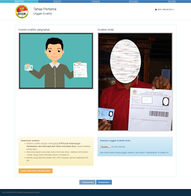 Jika sudah punya akun silahkan login menggunakan NIK dan Password masing-masing agar teman-teman bisa melengkapi data diri. setelah berhasil login silahkan teman-teman unggah file photo selfie yang susah di buat memalui tahapan Registrasi seperti contoh ini. foto yang du unggah haru memenuhi persyaratan yaitu 200kb