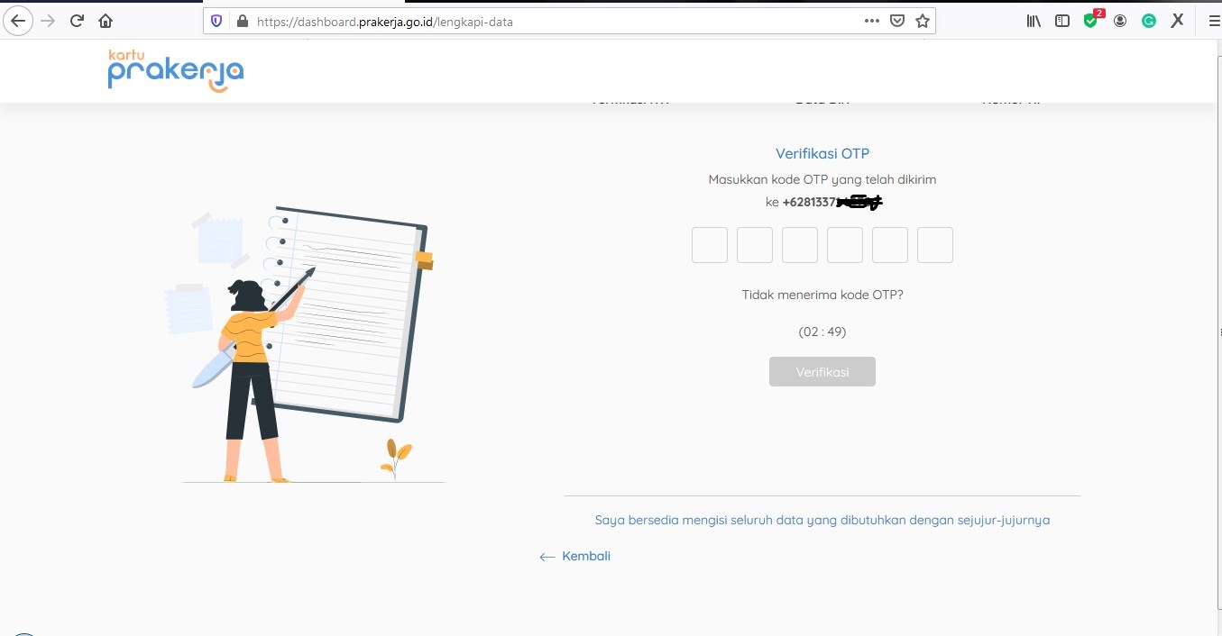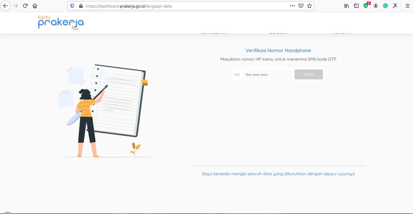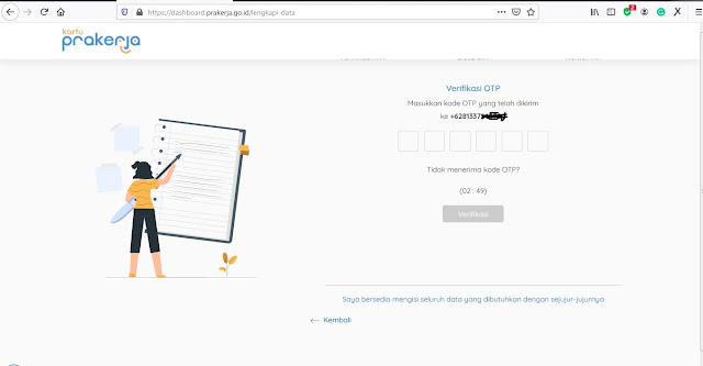 Setelah langkah diatas Selesai maka diminta untuk memverifikasi Nomer HP silahkan isi nomer yang aktif lalu kirim