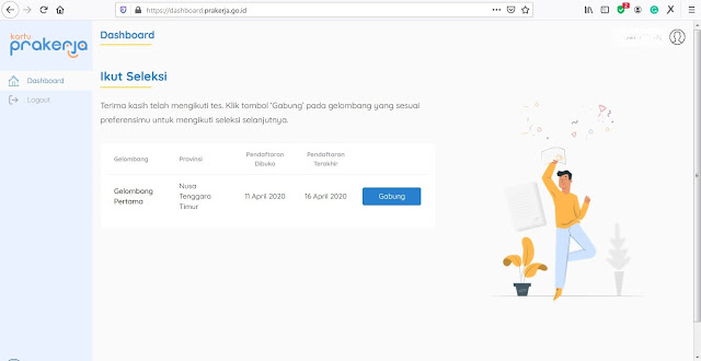 Dan kalian dapat melihat hasil sementara dari tes awal yang telah selessai dan silahkan klik pada Pilihan Gabung untuk mengikuti Tes selanjutnya