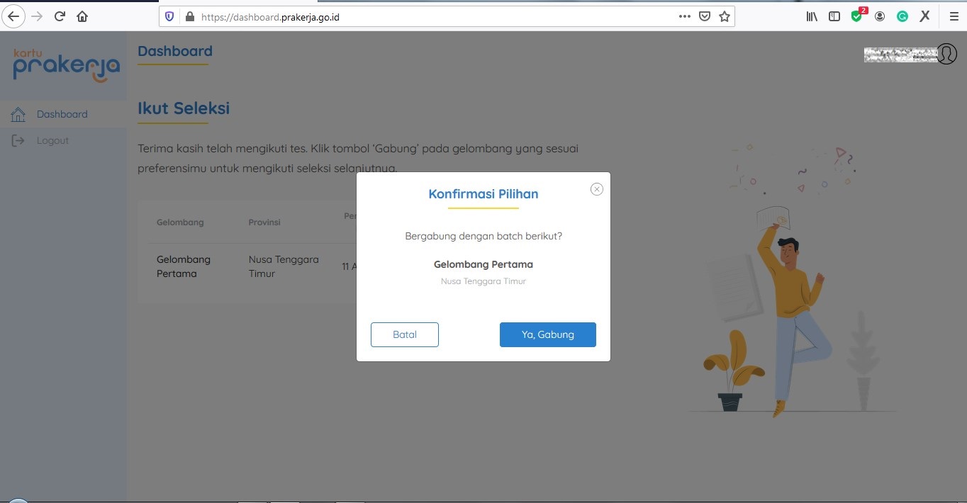 Sesuai Pernyataan yang diterima kalian silahkan pilih sesuai gelombang yang diperoleh saat kalian mendaftar dengan cara pilih pada pilihan Ya, Gabung